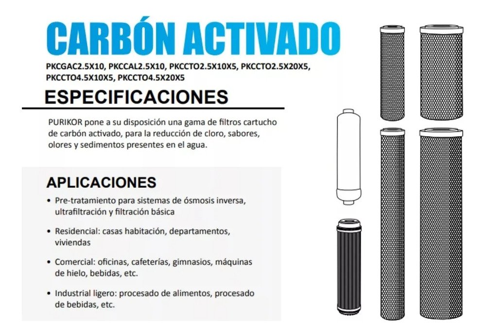 de carbón activado, para la reducción de cloro, sabores,