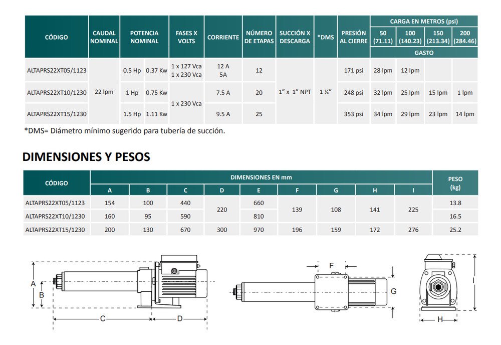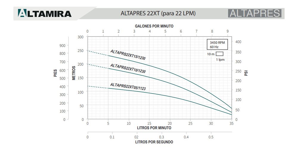 Rango de flujo 0.20 – 0.45 lps / 12 – 28 lpm