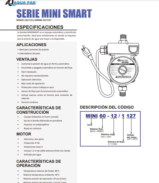 Incluye 1.2 metros de cable tomacorriente con clavija, tuercas unión de 3/4″ en bronce e interruptor de control (Auto / Off / Man)