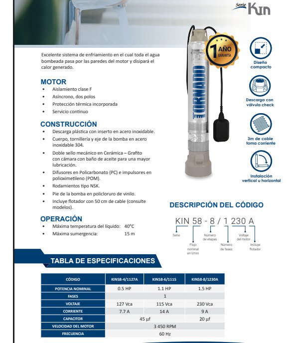 Bomba Sumergible Tornado Kin58-4/1127 Hp 1/2 – Plateado