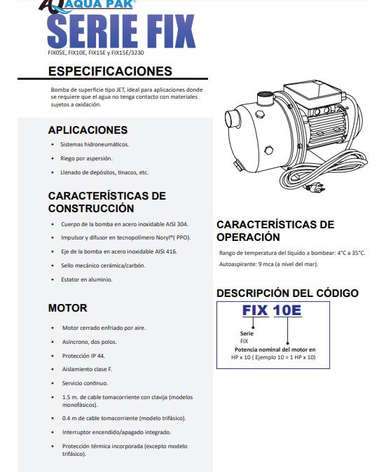 Tipo de producto Motobomba centrífuga (tipo jet) de superficie para agua limpia