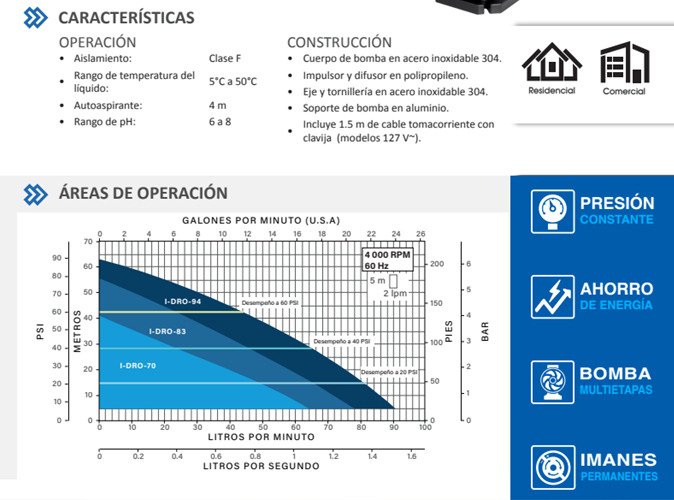 Protecciones Protección contra trabajo en seco, alto y bajo voltaje, sobre corriente, alta y baja temperaturas.