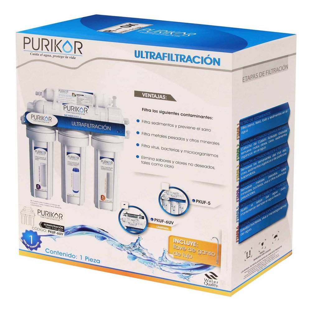 Purificador Agua 6 Etapas Ultrafiltración Purikor Pkuf-6uv Blanco