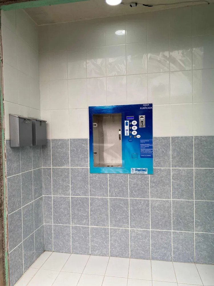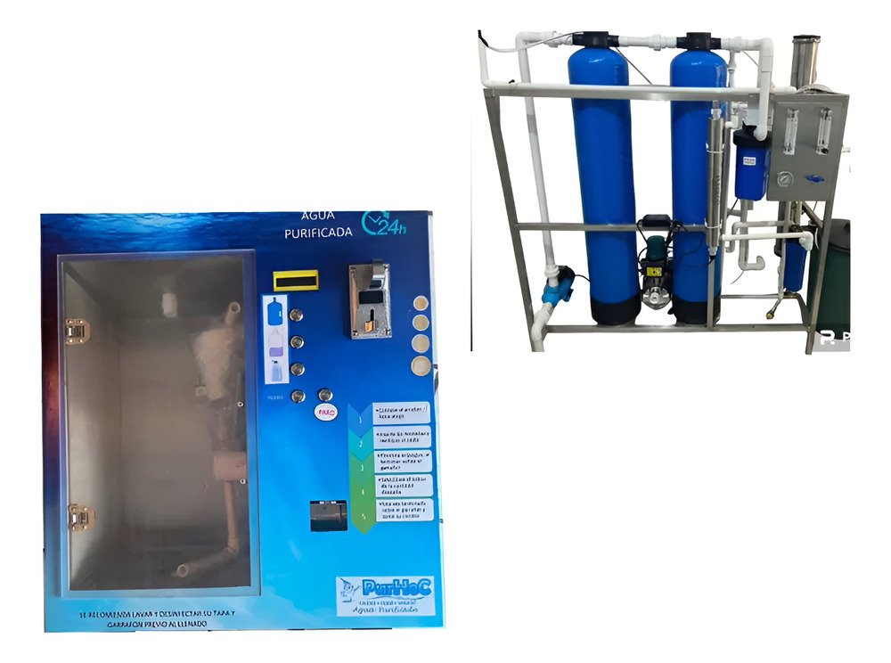 Vending de agua purificada tradicional, da cambio. 3 despachos, paro y enjuague. Reportes de venta. Puerta de Acrilico de 6 mm con jaladera.